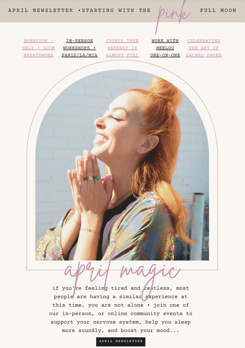 Welcome to the MAGIC OF APRIL • if you're feeling tired and restless, most people are having a similar experience at this time, you are not alone • join one of our in-person, or online community events to support your nervous system, help you sleep more soundly, and boost your mood...